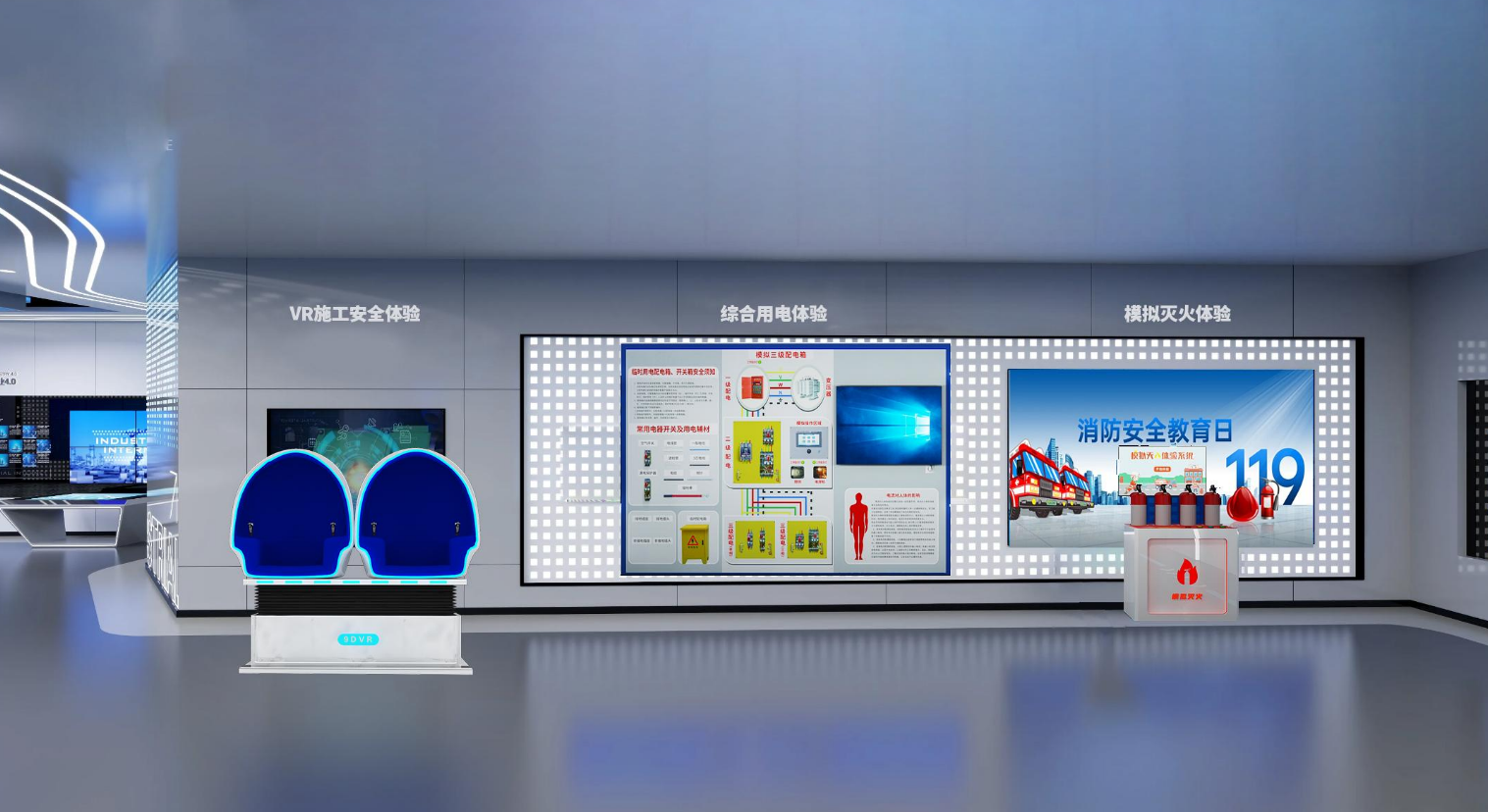 | 隐患识别与工伤预防训练区 | VR坠落模拟平台 | 高空坠落场景真实再现(高致死风险) |