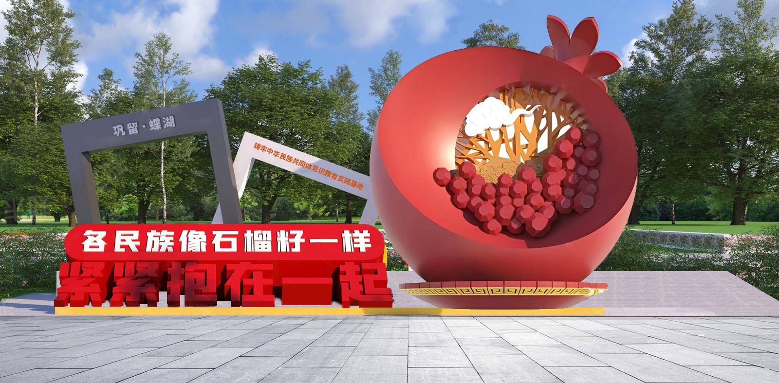 以铸牢教育主题雕塑和标志性景观装置作为基地入口,奠定整体文化基调,引导市民进入主题情境,完成从"游客"到"学习者"的角色切换。