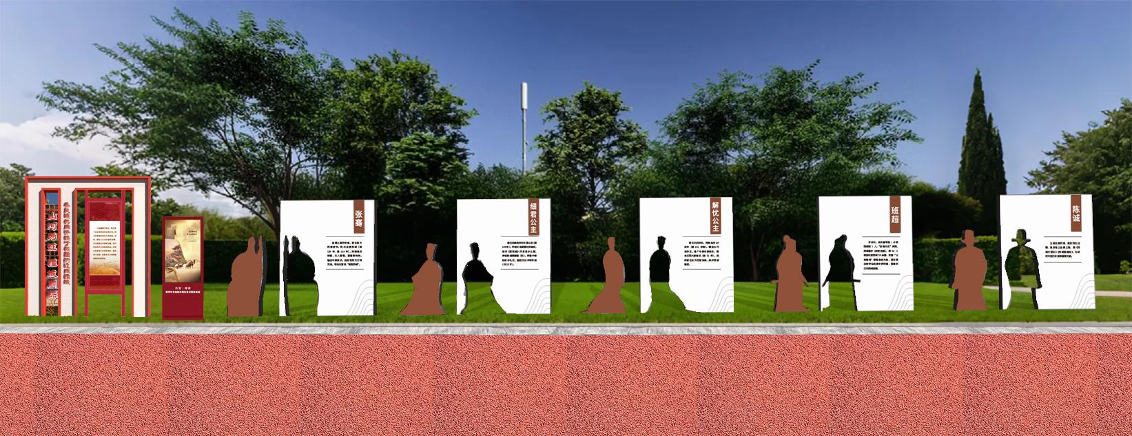 以造型雕塑结合55寸户外感应屏,呈现张骞、细君公主、解忧公主、班超、陈诚等历史上沟通中原与西域的关键人物剪影与事迹介绍。配套户外屏循环播放从夏朝至近代的疆域版图变迁动态动画视频,以时间轴为脉络直观还原中华版图共同缔造的历史进程。
